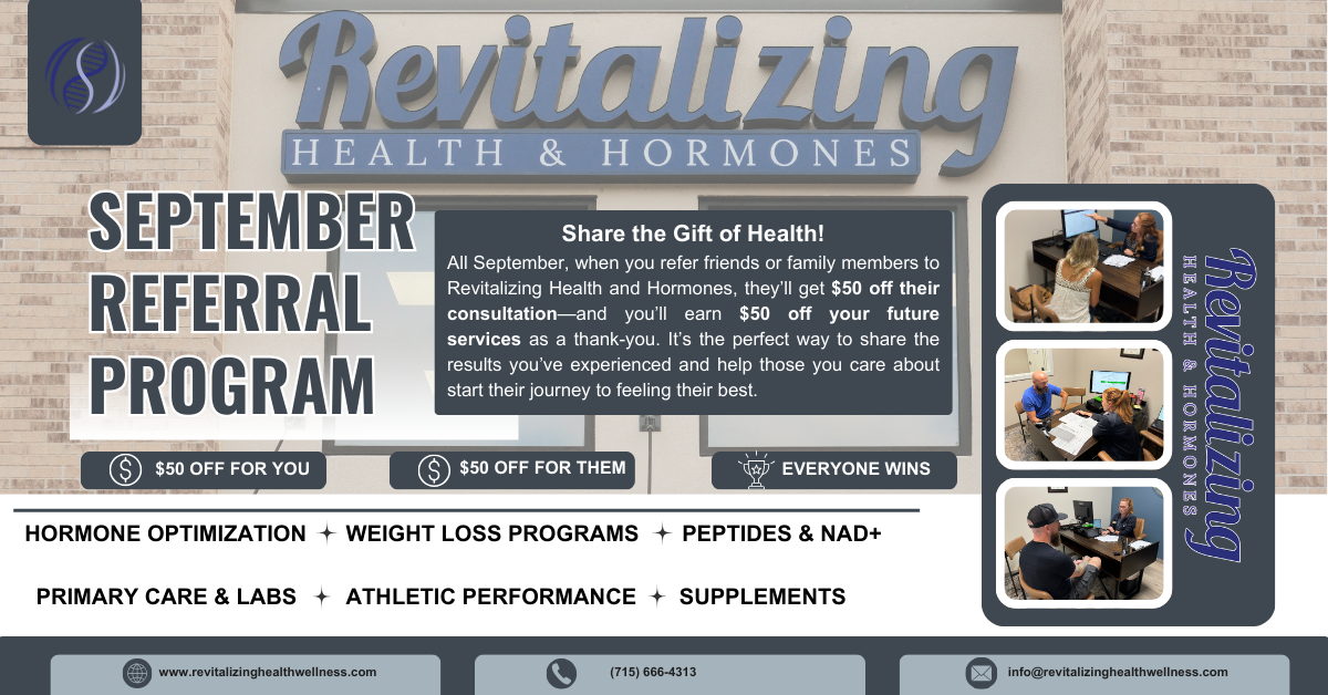 At Revitalizing Health & Hormones, we believe good health isn’t just something you keep to yourself; it’s something you share. That’s why this September, we’re